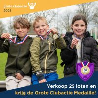 Iedereen die minimaal 25 loten heeft verkocht, heeft een Grote Clubactie Medaille 2023 verdiend. Dit zijn maar liefst 60 verkopers. Goed gedaan allemaal. Jullie kunnen vanaf zaterdag 2 november je medaille ophalen bij de Ontvangst bij de bar (daar ligt een lijst met namen klaar).